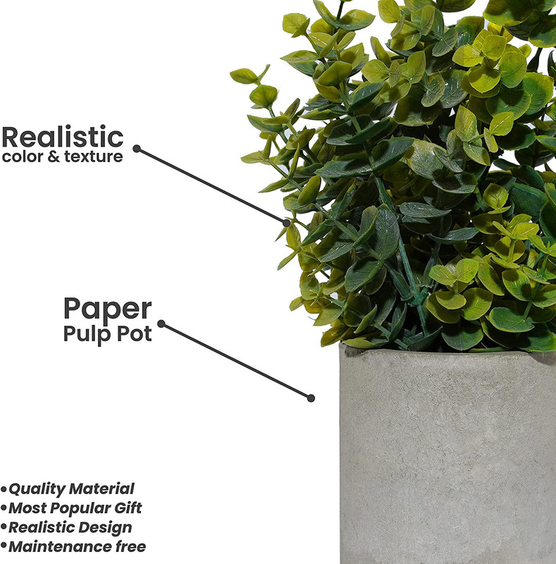 Artificial plants look more like real plants. Our mini plants are realistic in color and texture. Faux plants indoor looks exquisite and real enough to add a pop of color to your home. These small potted plants bring the lush beauty of the outdoors to your home. You do not need to buy extra pop for mini plant because it equipped with paper pulp pot.